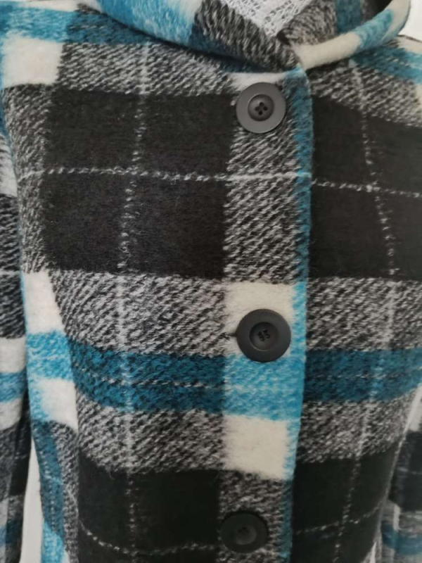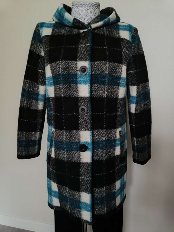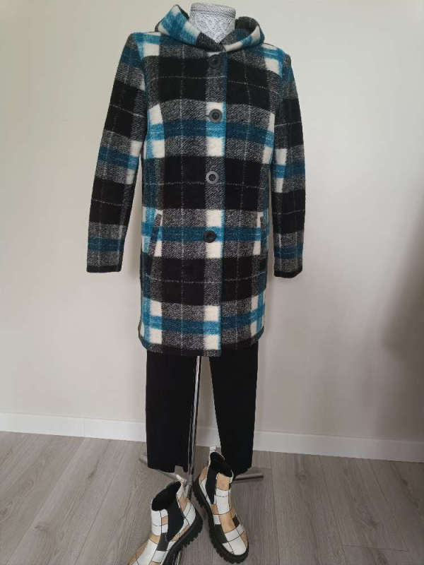 Mažai dėvėtas,puikios būklės gaminys , be defektų,su gobtuvu,turi pamušalą,su 2 šoninėmis kišenėmis,turi gilius skeltus šonuose,tiesaus kirpimo.Dydis tinka M-L