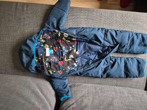 Labai geros būklės kombinezonas, jokių įplišimų, viduje pūkai, 18-24 mėn. amžiui. Pakankamai šiltas, tinka ankstyvam pavasariui, rudeniui, žiemai