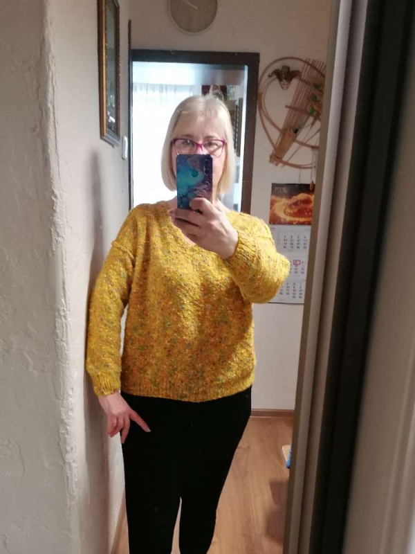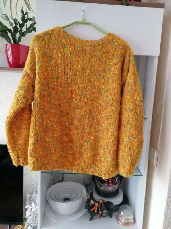 Rankų darbo megztinis. Siūlai moheras, akrilas, medvilnės pumpuriukai.