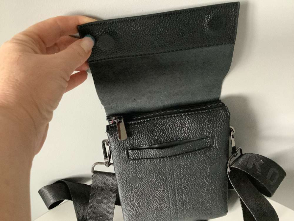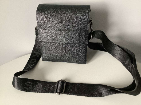 Nauja odine vyriska rankine.Kokia oda,nezinau,bet atrodo,kaip tikra. Segasi pasleptais magnetais ir poto uztrauktuku.Skyreliai parodyti foto,talpi,20x16cm.Rankena reguliuojasi.Perziurekite visus mano daiktus,taip sutaupysite siuntimo islaidas.