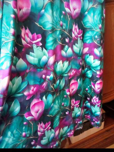 Be rankovių, apačia laisvai krentanti, platėjanti.