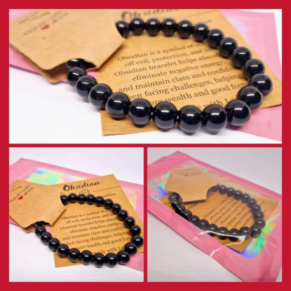 Nauja Obsidianto apyrankė 8 mm karoliukai . Tinka tiek vyrams tiek moterims . Kortelė su obsidianto savybėmis +maišelis