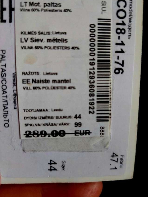 Šiai dienai šis paltas kainuoja virš 300€ "Apranga" parduotuvėse