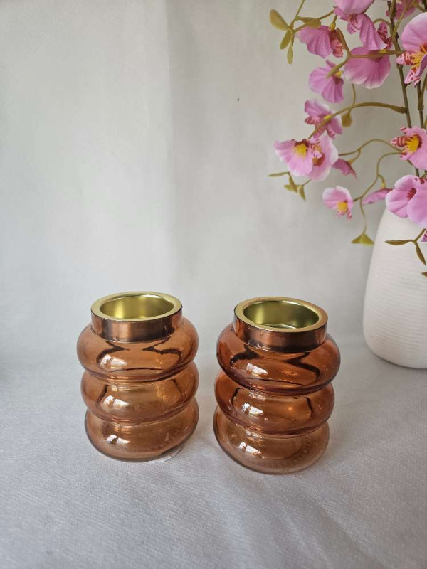 2vnt storo stiklo žvakidės, 9 cm aukščio. Dedasi arbatinės žvakutės.